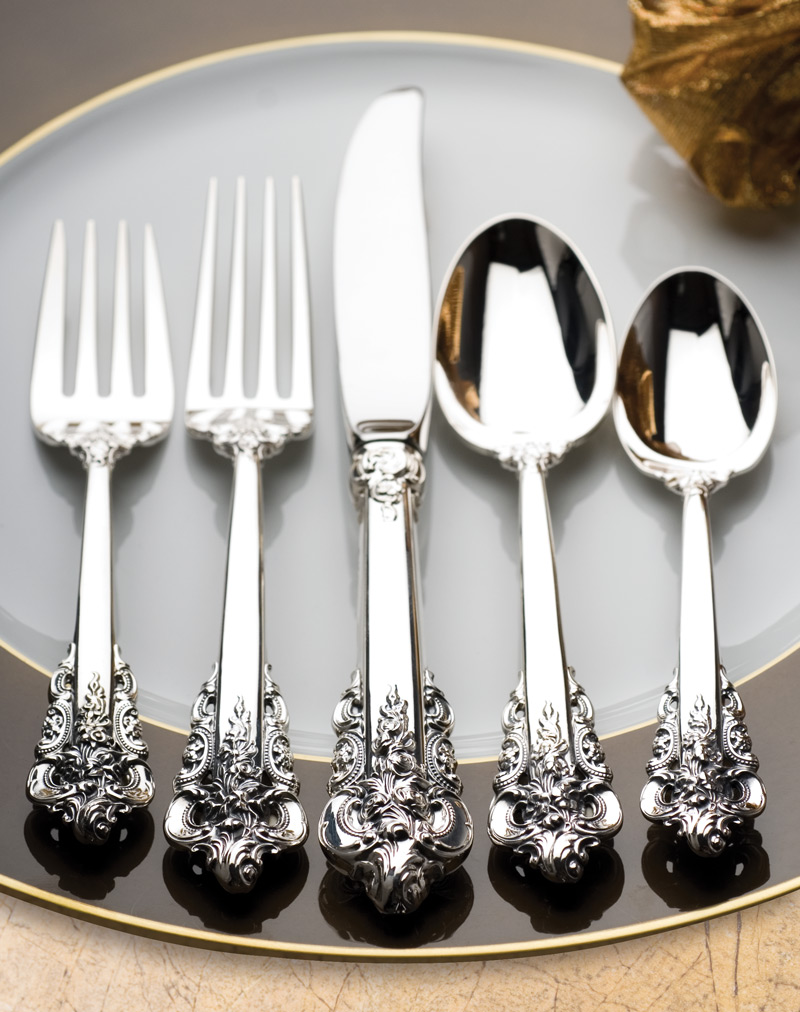 Grande Baroque By Wallace Sterling Silver Flatware Set For 8 Service 58 Pieces Ebay from i.ebayimg.com Wallace silver, grande baroque (sterling, hollowware, 1 hallmark). Introduced in 1941, grande baroque has become the most popular sterling silver pattern. A place setting of wallace sterling silver flatware in the grande baroque pattern. 4pc consists of knife, fork, salad fork, teaspoon. Make your present one to remember by purchasing this unique gift item. Grand baroque by wallace sterling silver cheese knife w/pick fh. Styled in the lavish baroque manner, this highly collectible pattern is a wallace best seller. Notice the h for heavy in a circle on the back!